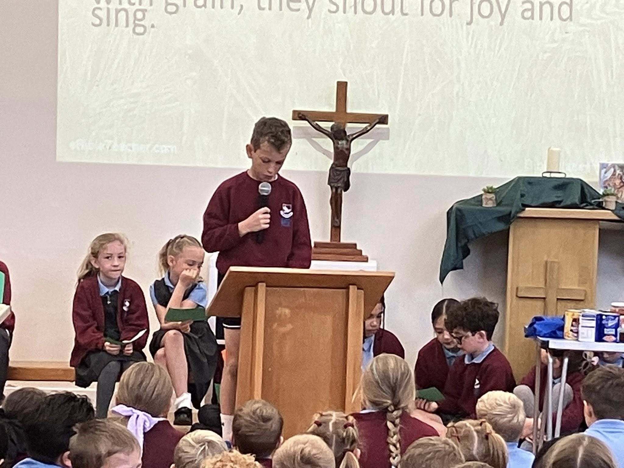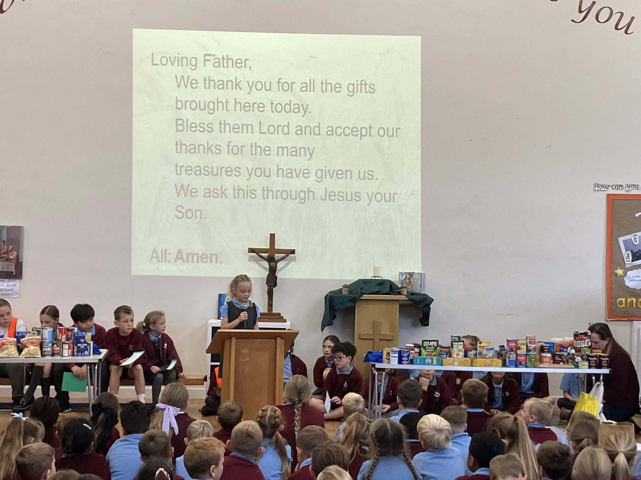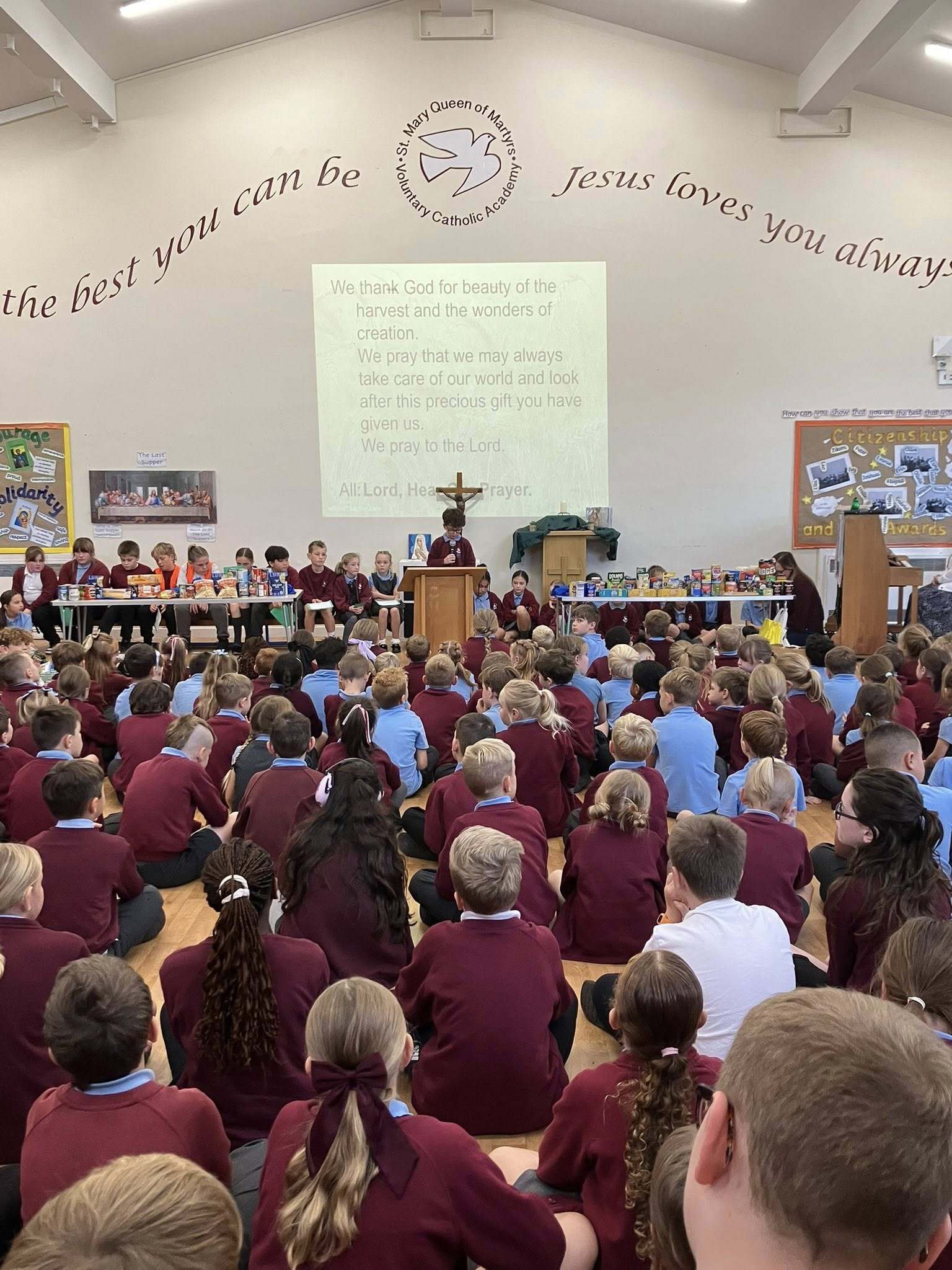 We held a lovely Harvest Festival liturgy in school this morning, led by our Mini Vinnies, Junior Chaplains and CAFOD Club, in which we were reminded to live simply and only take what we need. Thank you to our families for their generosity, all donations will be going to Hull Food Bank. #harvesttime #livesimply #CAFOD
